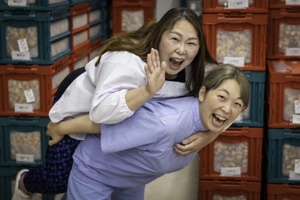 従業員は店舗の販売スタッフを含めると約20名。あられのパッケージもすべて手作業で行っています。機械を使うほうが効率がよいかと思いましたが、味の種類が多いため、機械を洗わないとパッケージに味が残ってしまいます。機械を洗うのが大変で、結局手作業が1番早い。工場には3~4名のスタッフがいます。大量生産はできません。先代のおしえは、「ていねいな仕事」です。
